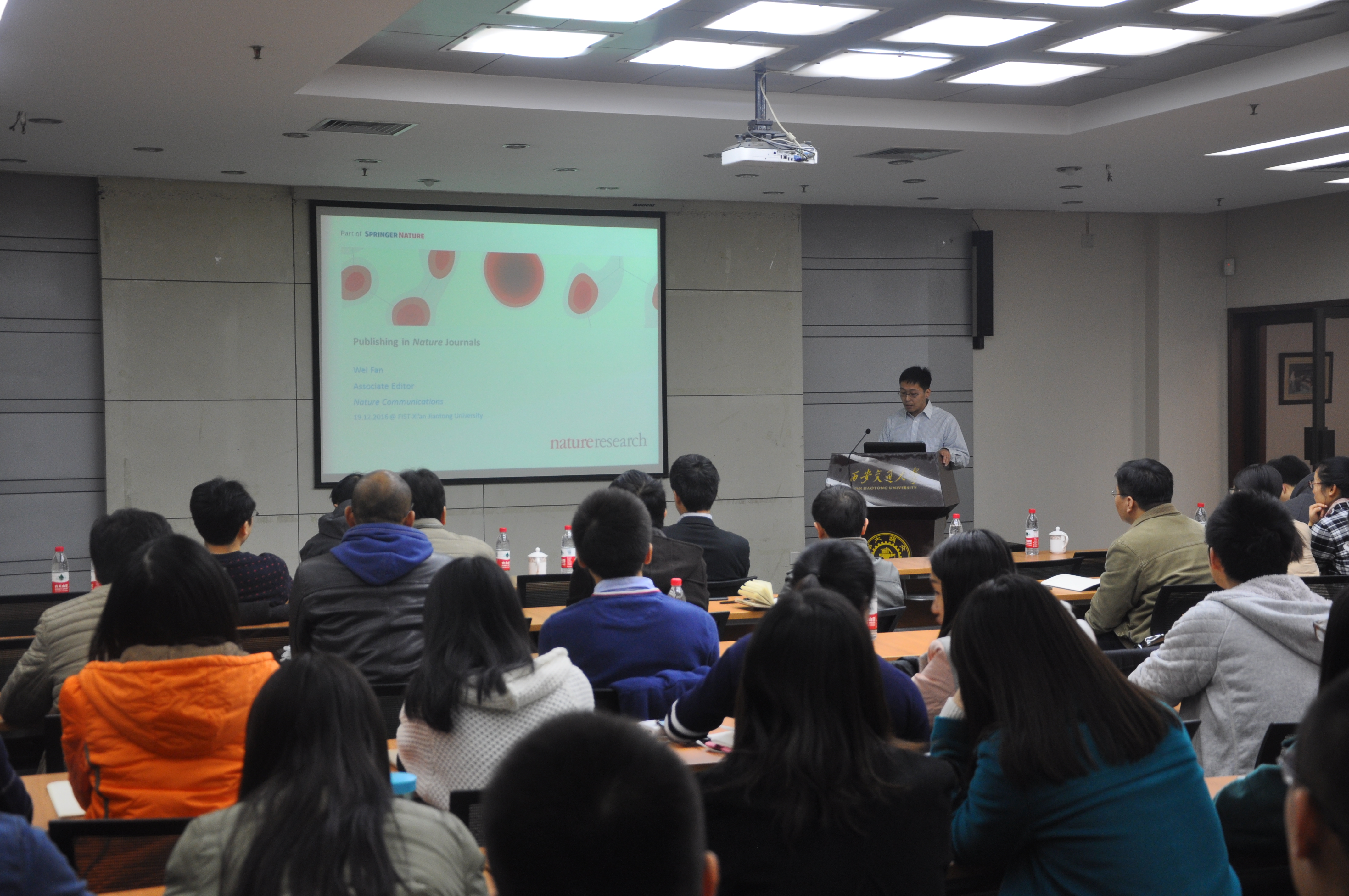 近日,Nature Communications期刊编辑樊巍博士来西安交通大学bwin进行学术访问交流,并于12月19日上午10点在主校区科学馆进行了题为“Publishing in Nature journals”的学术报告。任晓兵教授主持此次学术交流会,二十多名教师,近百名研究生到场聆听。