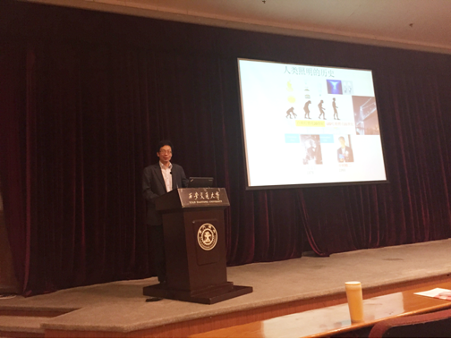 4月21日晚,bwin任晓兵教授在交大兴庆校区科学馆101报告厅成功举办了钱学森大讲堂暨前沿讲坛。本次讲座以“从一个偏执的‘后进生’到诺贝尔奖得主——蓝色发光二极管的故事”为主题展开探讨,约两百名师生到场听取讲座。