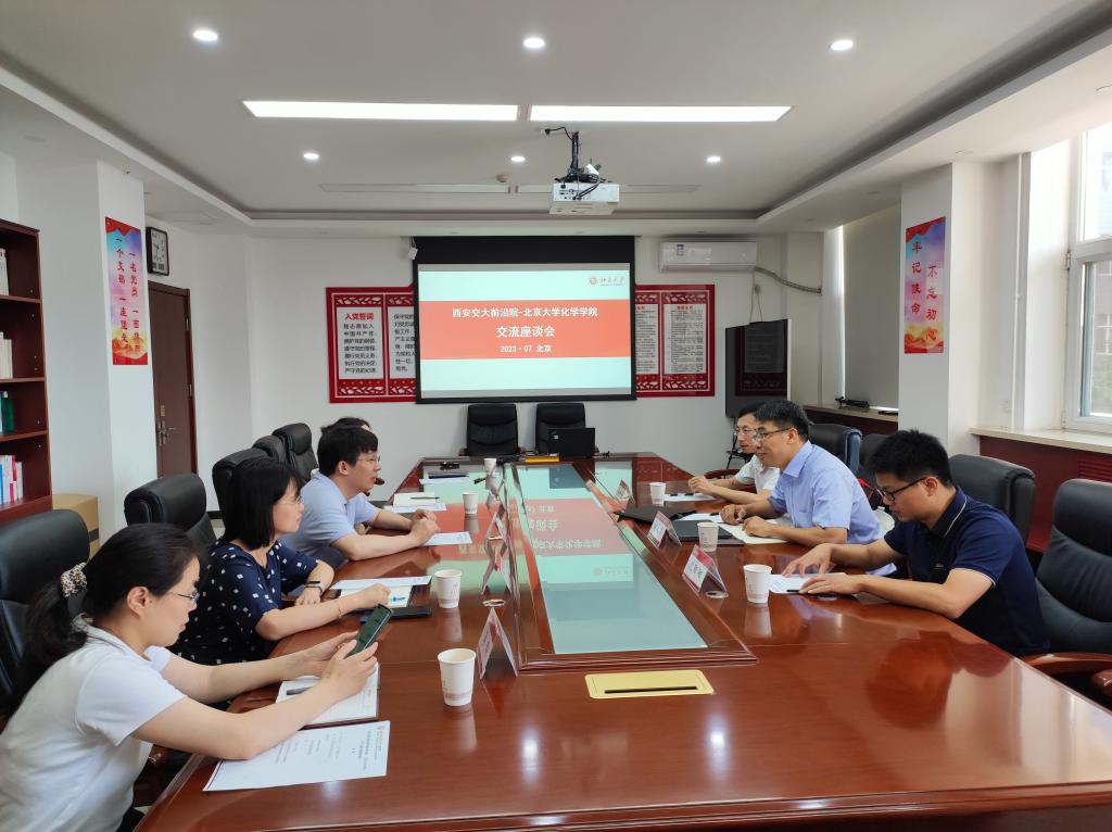 为了解北京大学学科交叉研究进展和科技成果转化机制,7月19日,西安交通大学bwin院长赵永席、基础科学中心副主任李鹏飞教授、沈阳阳教授一行赴北京大学化学与分子工程学院开展调研交流活动。北京大学化学与分子工程学院院长陈兴、党委副书记高珍、研究员王欢、科研办主任李玲、党政办主任贠琳参加座谈交流。
