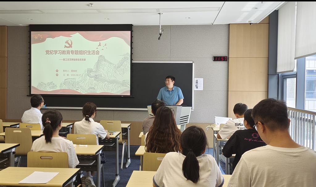 博士一年级学生党支部在组织生活会上分享对党纪的理解和认识,讨论如何在工作和生活中坚持党纪,提高自身素质和组织建设。党委委员李鹏飞教授列席指导,他表示,党员同志要做好先锋表率作用,加强政治理论学习,增强党性修养,提高专业能力。