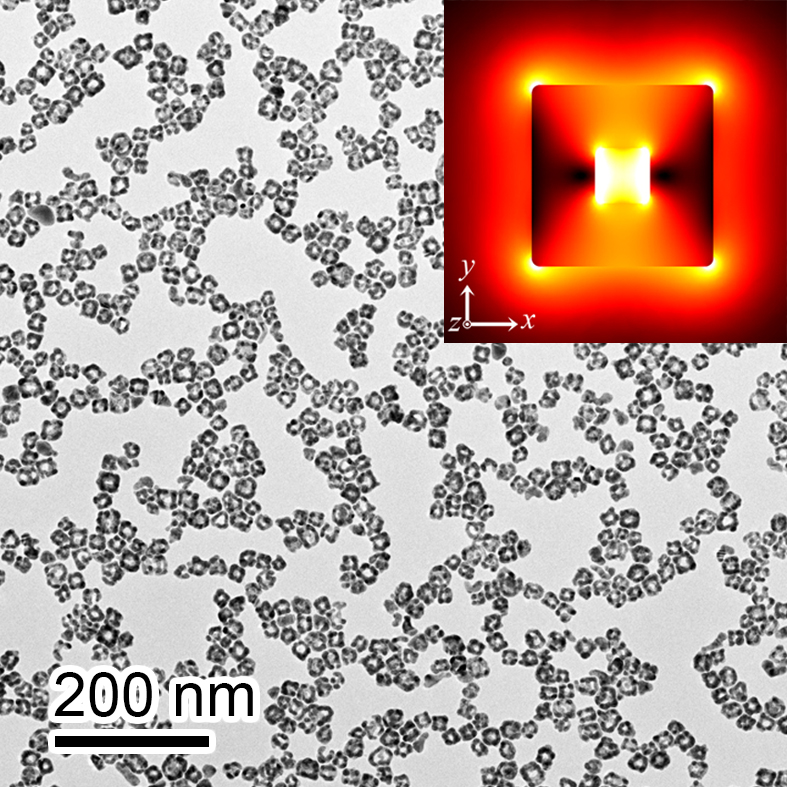 图1:金纳米框架的透射电镜图及其表面拉曼热点分布