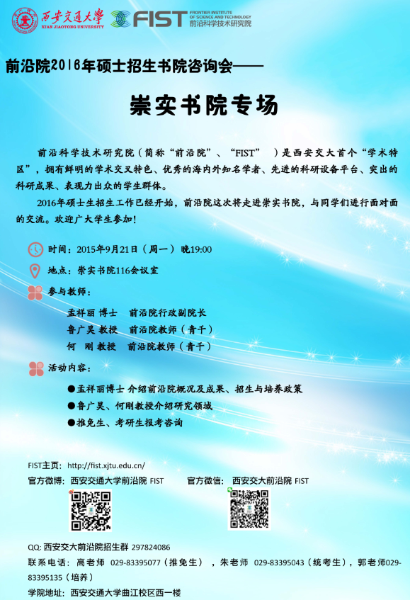 地址:曲江校区——陕西省西安市雁塔区雁翔路99号西安交通大学曲江校区西二楼
