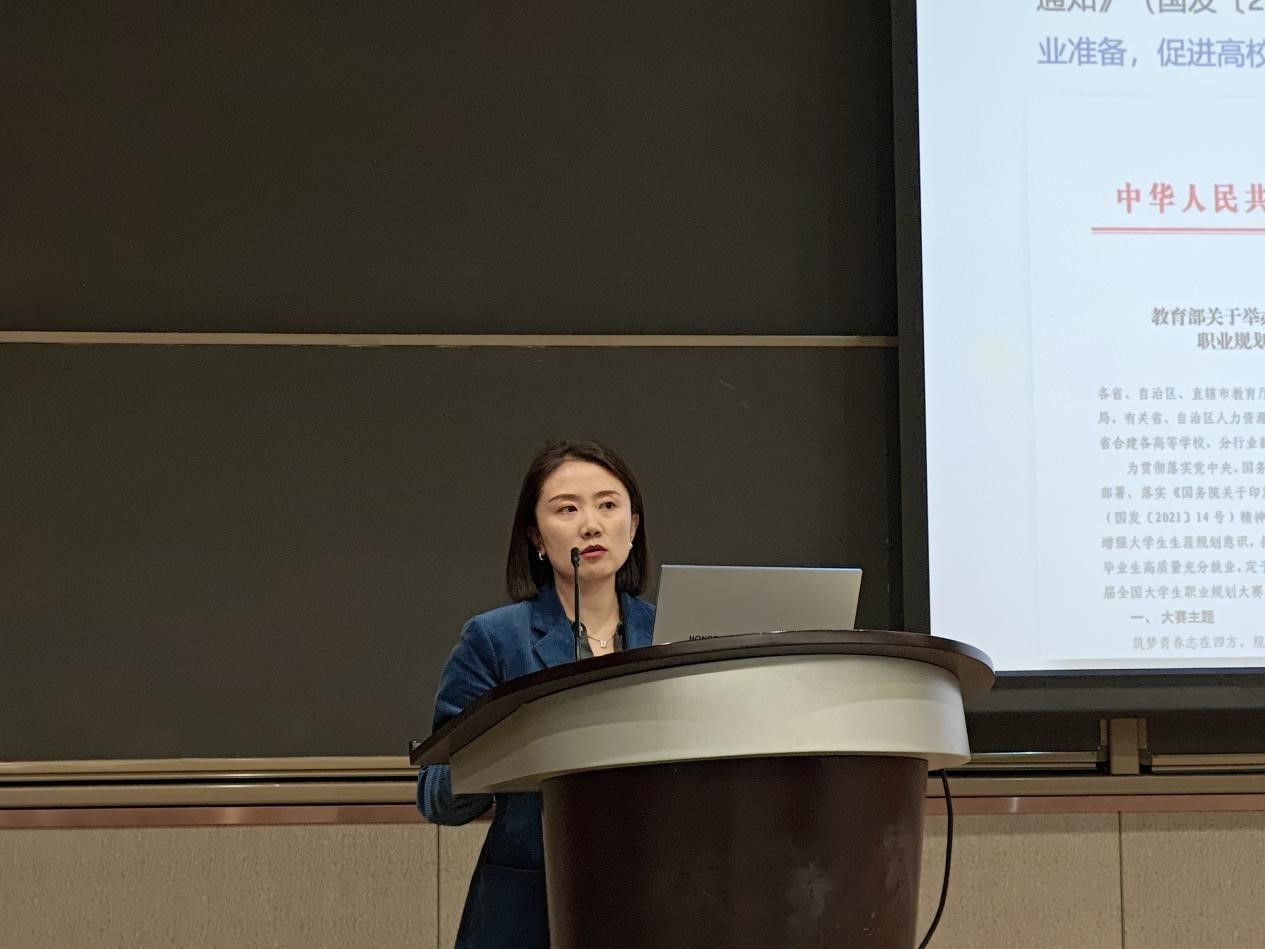 为增强大学生职业生涯规划意识,促进毕业生高质量就业发展,化学、前沿、人居、生命、化工五学院联合举办职业规划大赛动员讲座,邀请就创中心副主任苗洁为同学们分享职业发展规划专业知识,解析“第十届大学生职业规划大赛暨首届全国大学生职业规划大赛校内选拔赛”赛事内容。