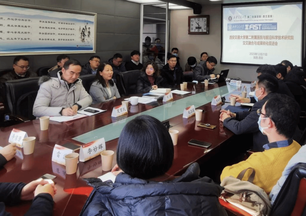在随后的合作交流座谈环节,bwin赵永席院长,邵永平副院长,医工交叉研究中心主任雷波教授,基础科学研究中心主任李鹏飞教授,医工交叉研究中心副主任郭保林教授,冯智辉教授、李小军教授、张浩特聘研究员、李旭辉副教授分别就各自的研究方向进行了分享。二附院生物诊疗中心李宗芳教授,精准医疗研究院孔光耀教授、耿晶教授,科研部夏育民主任、秦杰副主任、杜冲副主任、樊洪副主任、马瑞副主任、吴菲副主任,以及皮肤科、肿瘤科、肿瘤放疗科、骨科、神经内科、神经外科、耳鼻喉头颈外科、呼吸与危重症医学科、消化内科、药学部、生物诊疗中心、精准医疗研究院等学科骨干参与讨论。