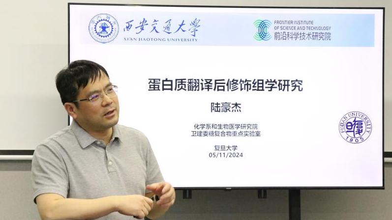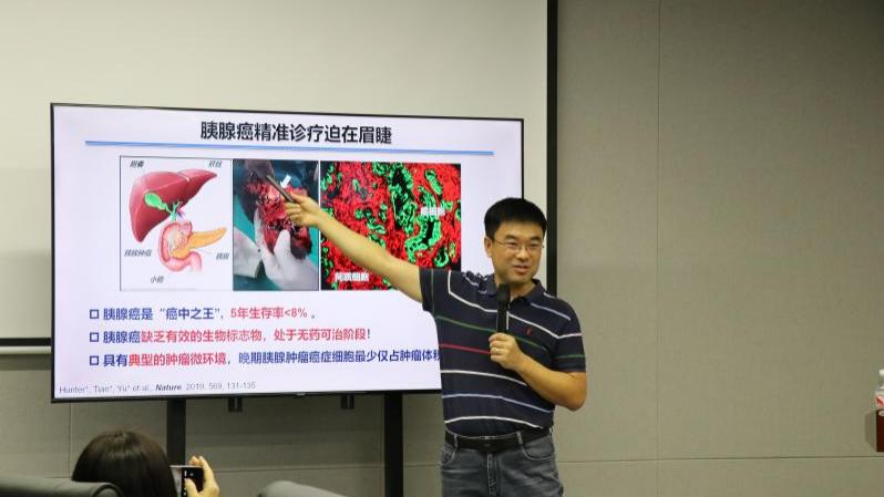 南方科技大学田瑞军教授作题为基于质谱技术的时空动态蛋白质复合物分析》的报告,田教授首先介绍了基于近程标记技术进行时空动态蛋白质组学技术的发展现状、发展趋势和挑战。随后系统讲解了通过多维度协同富集磷酸化蛋白、受体膜蛋白质、糖基化蛋白和蛋白质组学分析方法,成功地用于胰腺癌受体膜蛋白复合物LIF-LIFR-GP130的发现和临床组织样品的在体验证。同时,他还深入介绍了基于激光显微切割技术和人工智能实现空间可视化的蛋白质组学分析,实现了组织中单一细胞类型的精确获取,建立了空间分辨率下的脑内糖蛋白质组学分析。