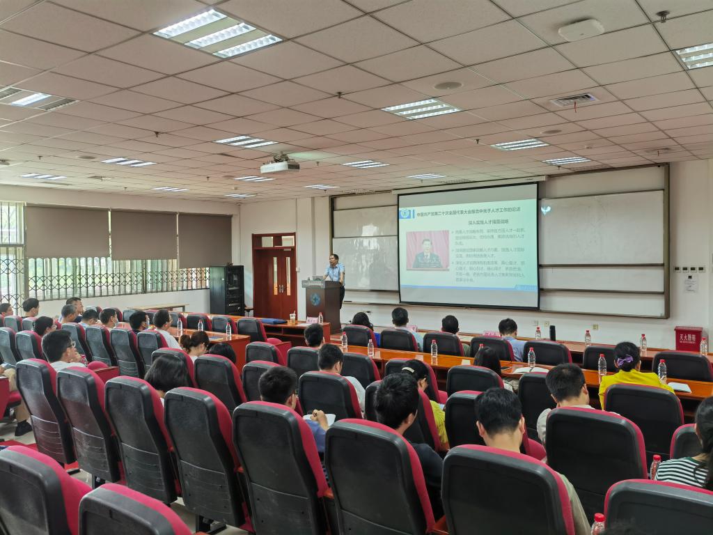 魏进家带领与会教师深入学习党的二十大精神和习近平总书记关于教育、科技、人才工作的重要论述,深刻领会习近平总书记关于新时代人才工作的新理念新战略新举措,切实领悟做好新时代人才工作的重大意义。